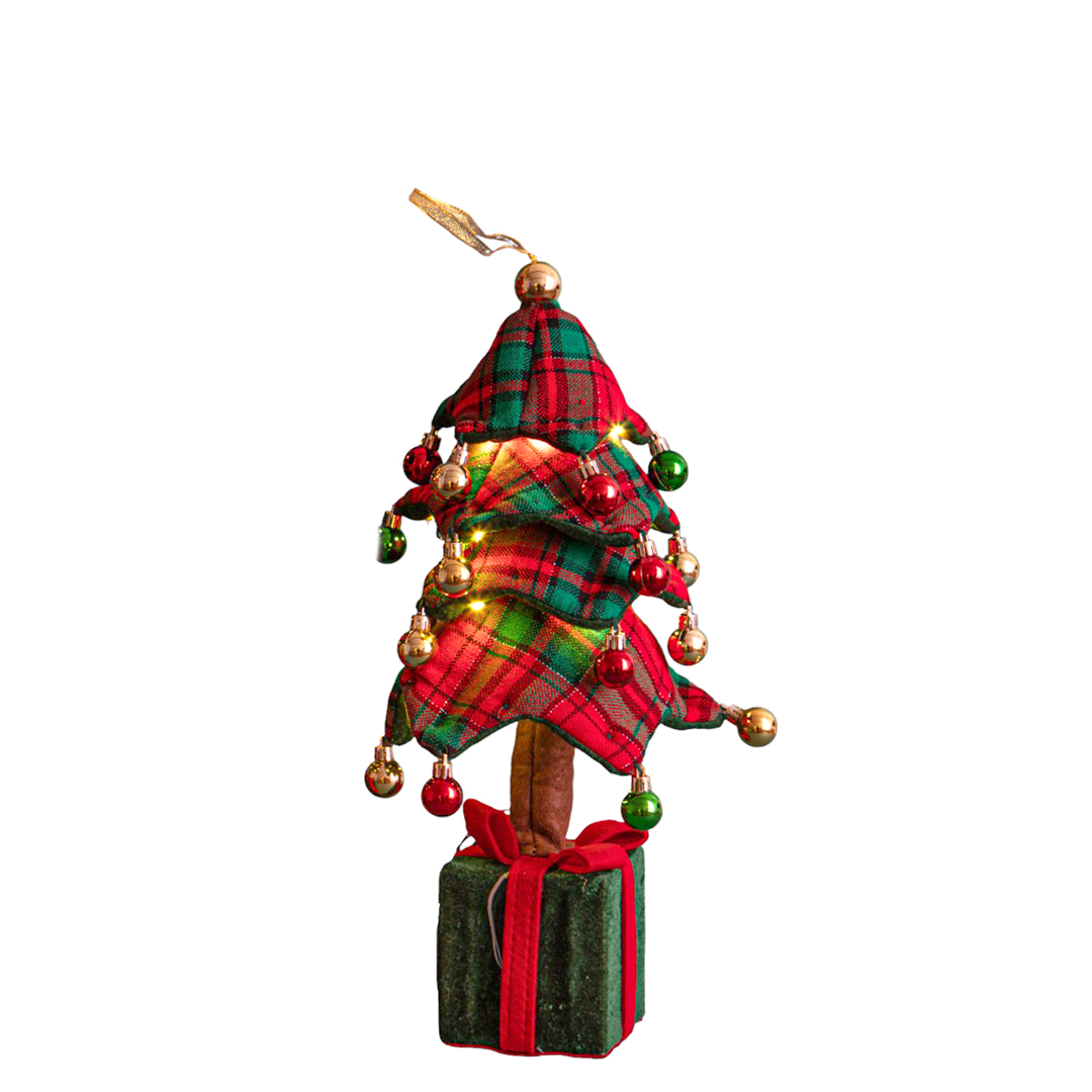 Descrizione: ALBERO H.45 CM C/SFERE PACCO DONO E LED