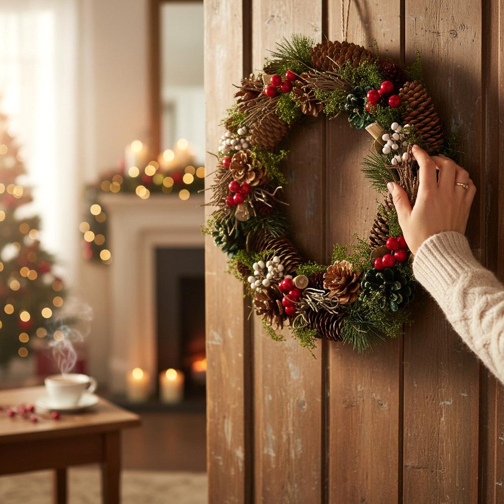 Descrizione: CORONA D.36 CM C/PIGNE ABETE E BACCHE