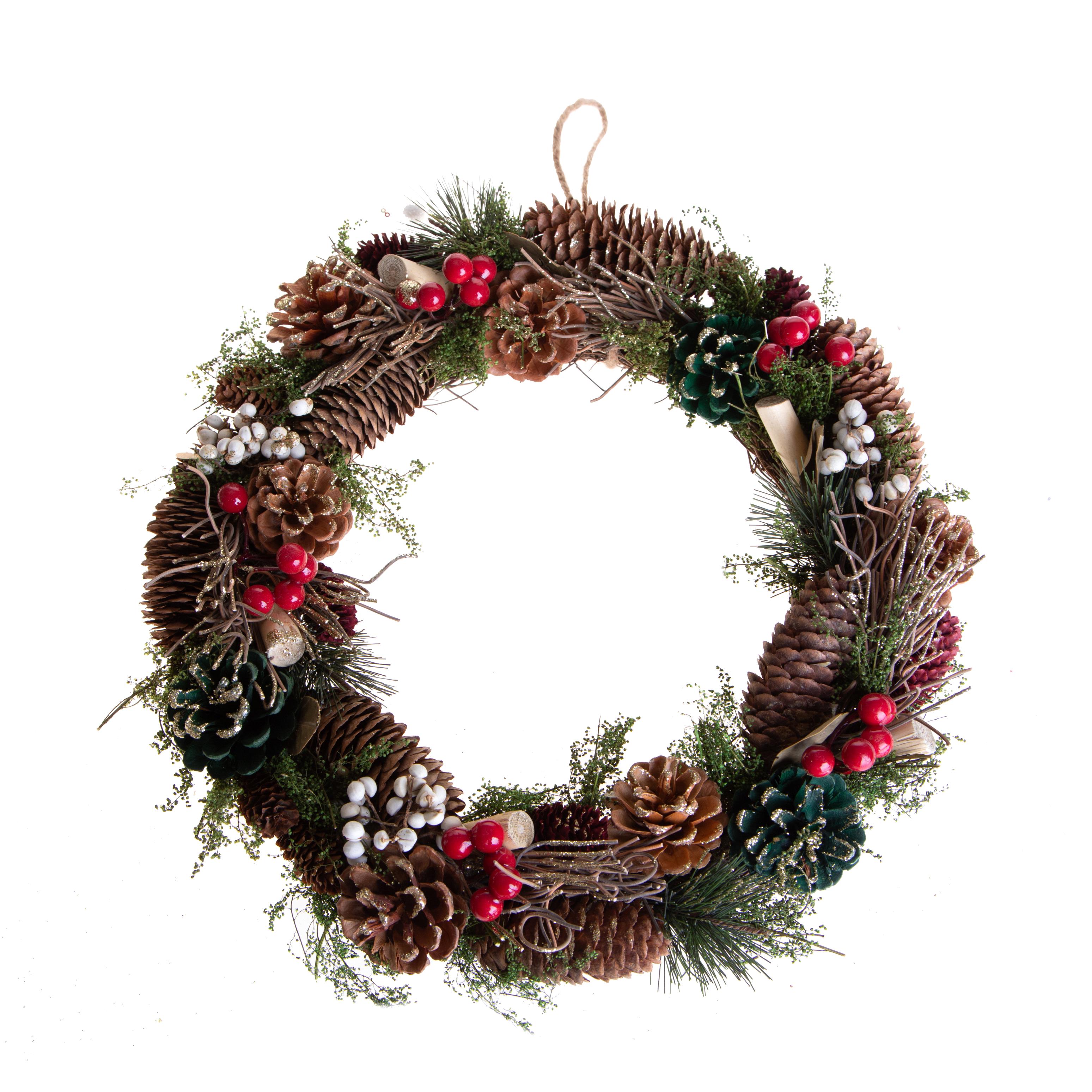 CORONA D.36 CM C/PIGNE ABETE E BACCHE