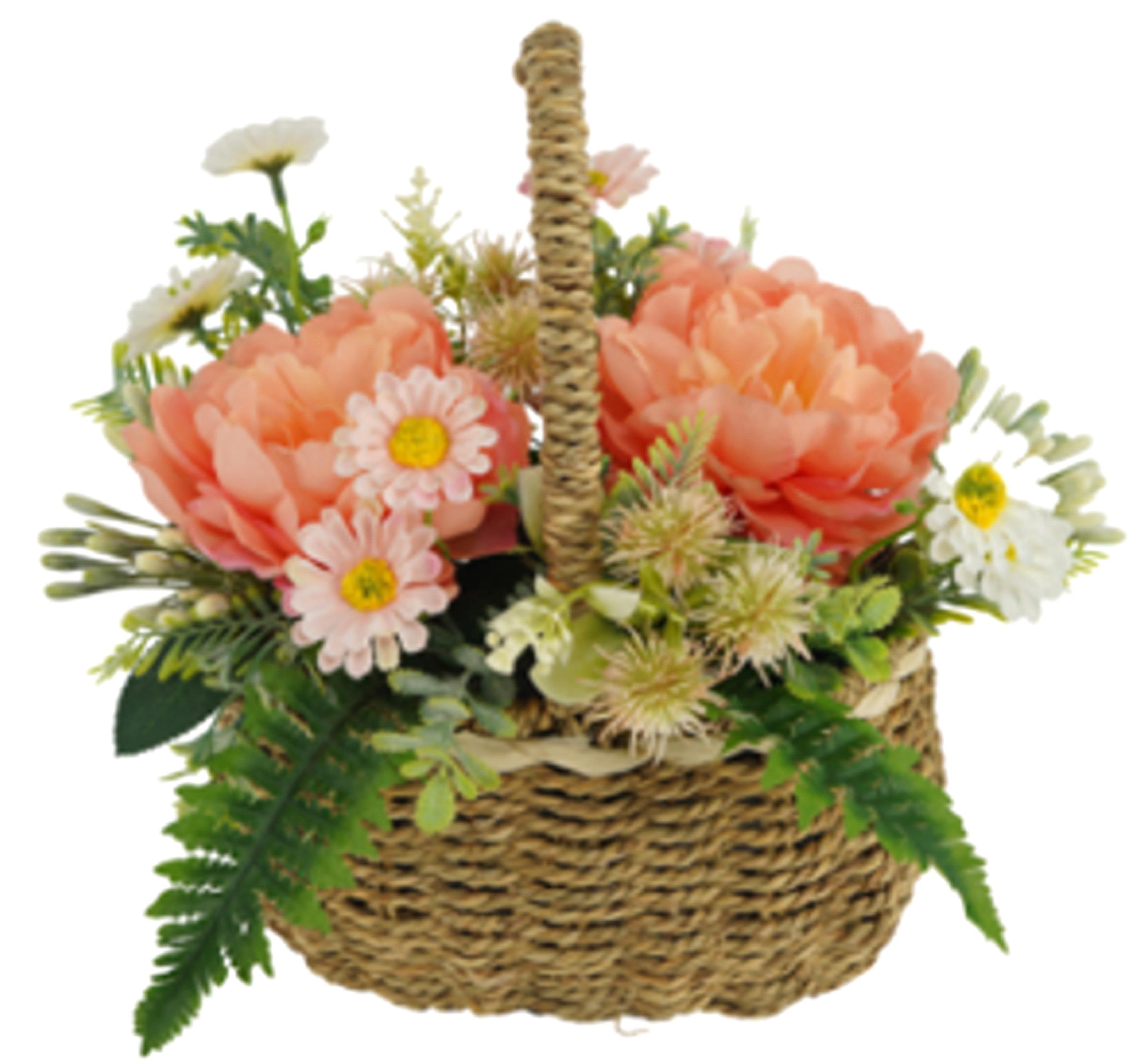 Descrizione: PEONIE/DAISY COMPOSIZIONE IN CESTO 45CM