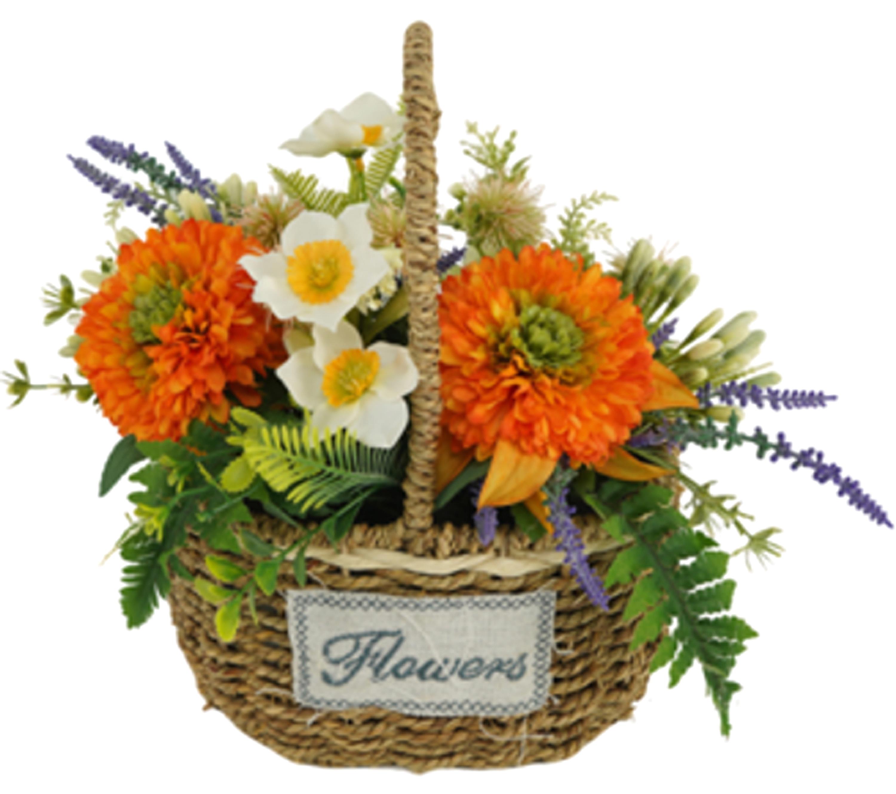 Descrizione: ZINNIE COMPOSIZIONE IN CESTO 45 CM