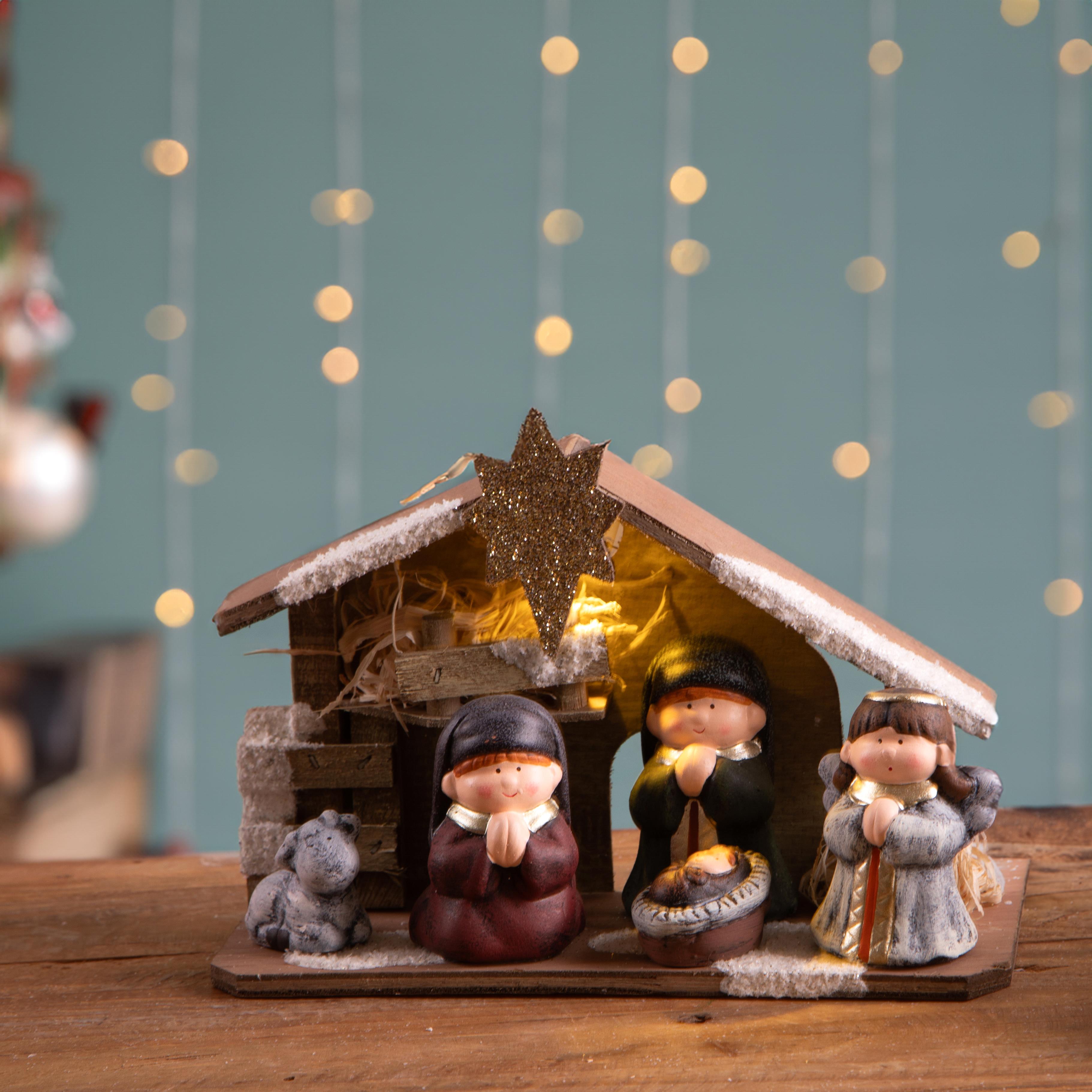 Descrizione: NATIVITA'H.16,5 CM C/CAPANNA C/LED