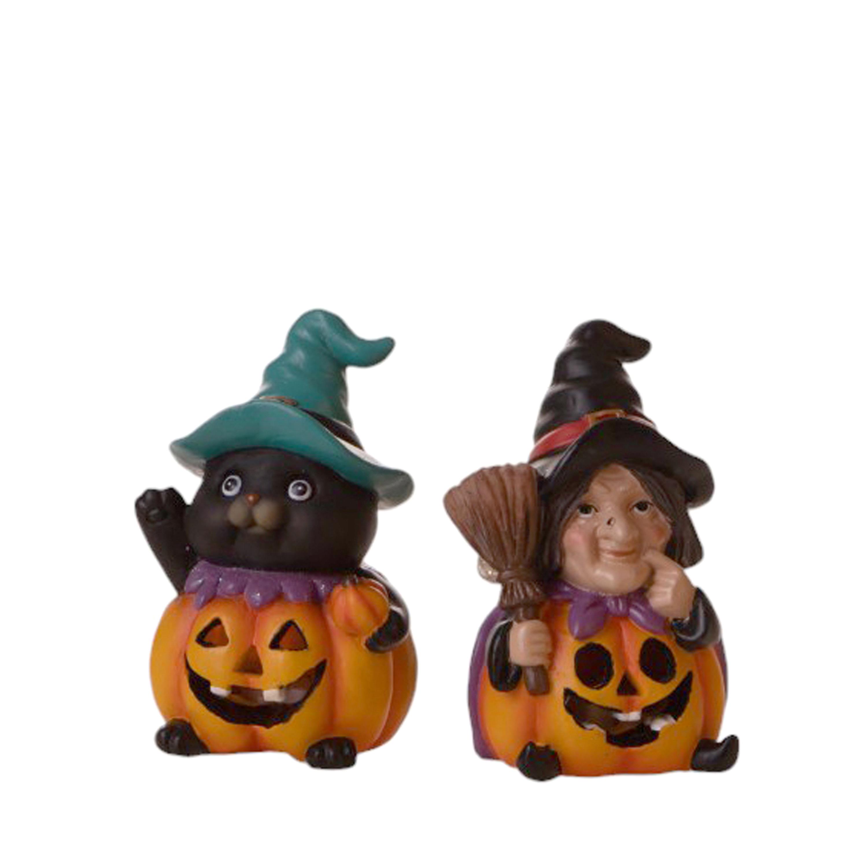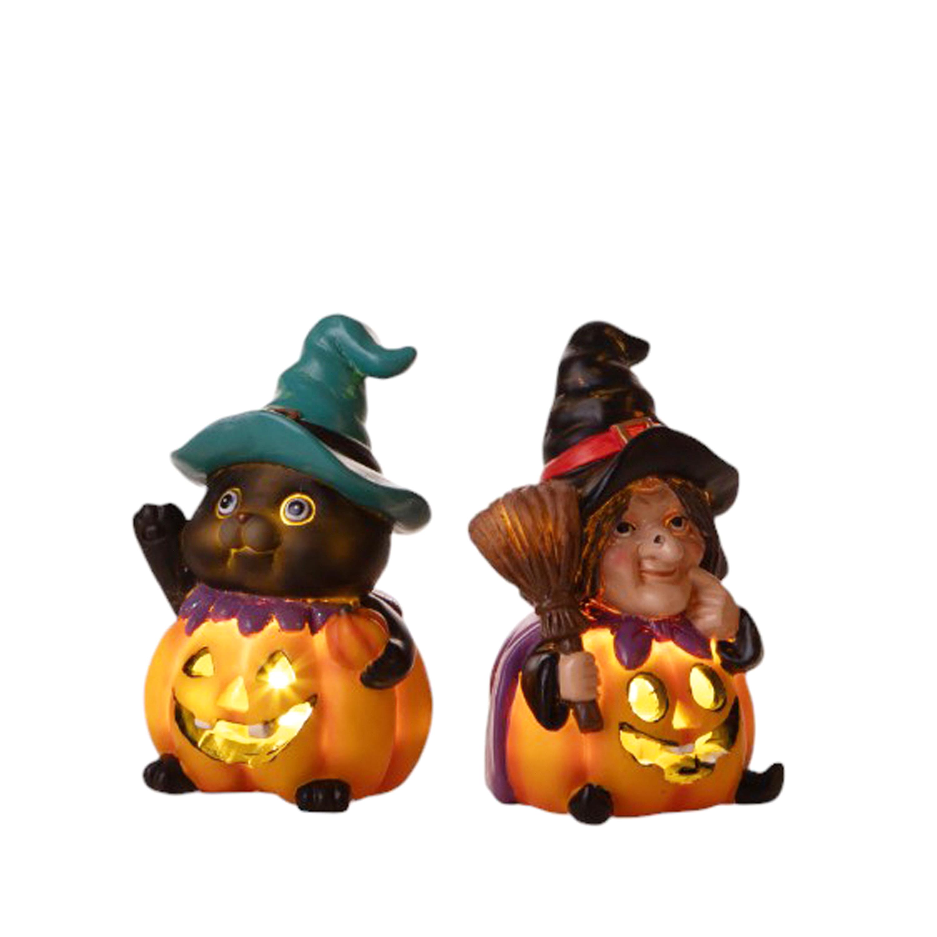 Descrizione: SET/2 STREGA/GATTO H.12 CM C/LED